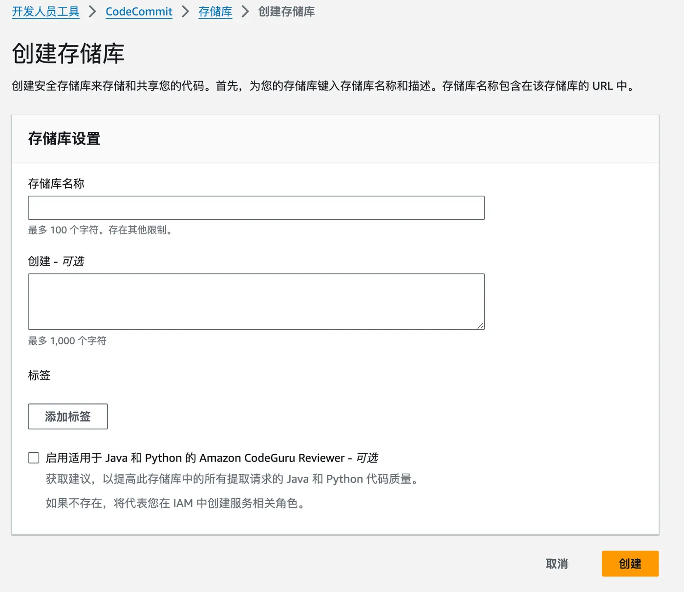 URL: https://us-west-2.console.aws.amazon.com/codesuite/codecommit/start?region=us-west-2