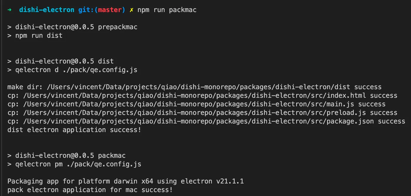 Electron — packaging Mac apps with qiao-electron-cli’s packmac command
