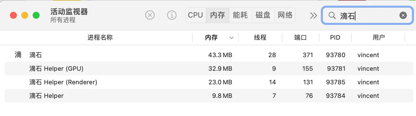 Using Mac’s Activity Monitor to inspect the running processes of this project —
