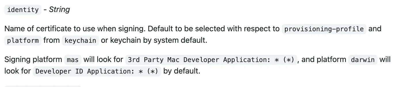 identity: 'Developer ID Application: xx',
