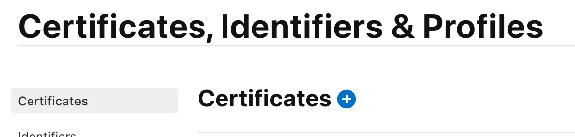 Click the plus button to create a certificate: