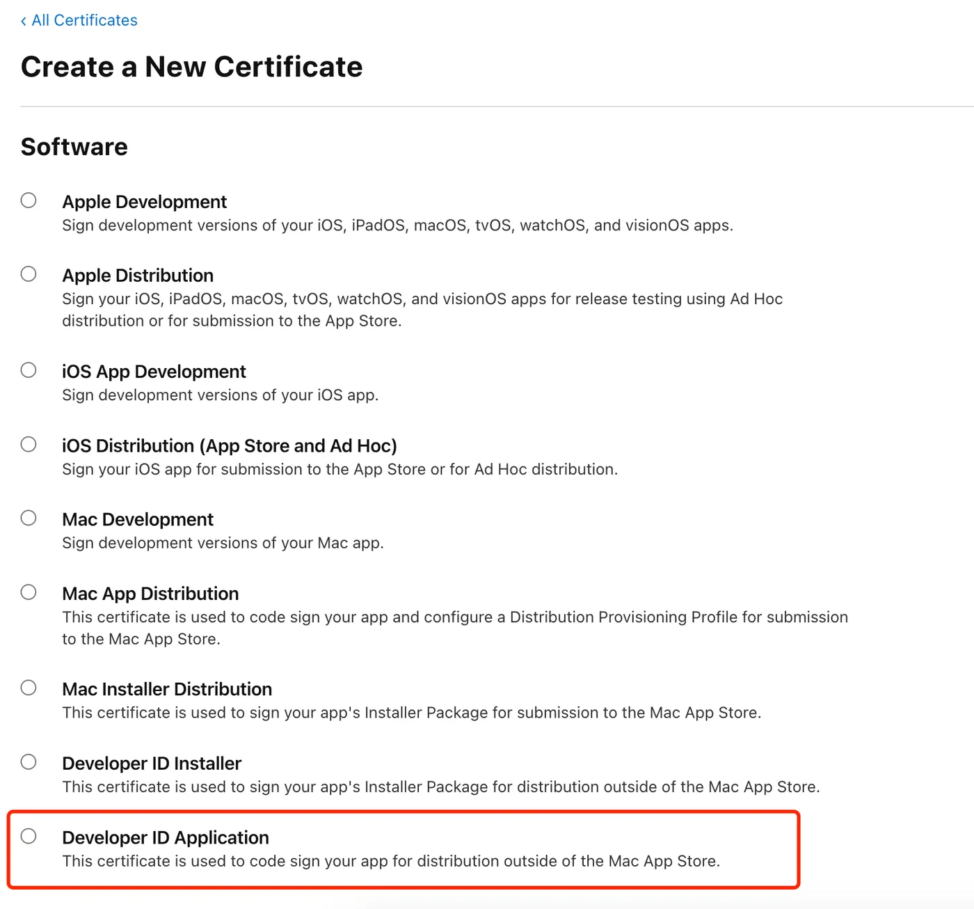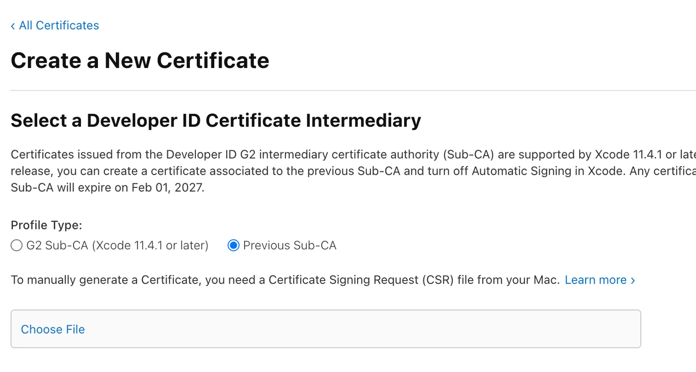 With the CSR file ready, you can create a certificate on the Apple Developer website.