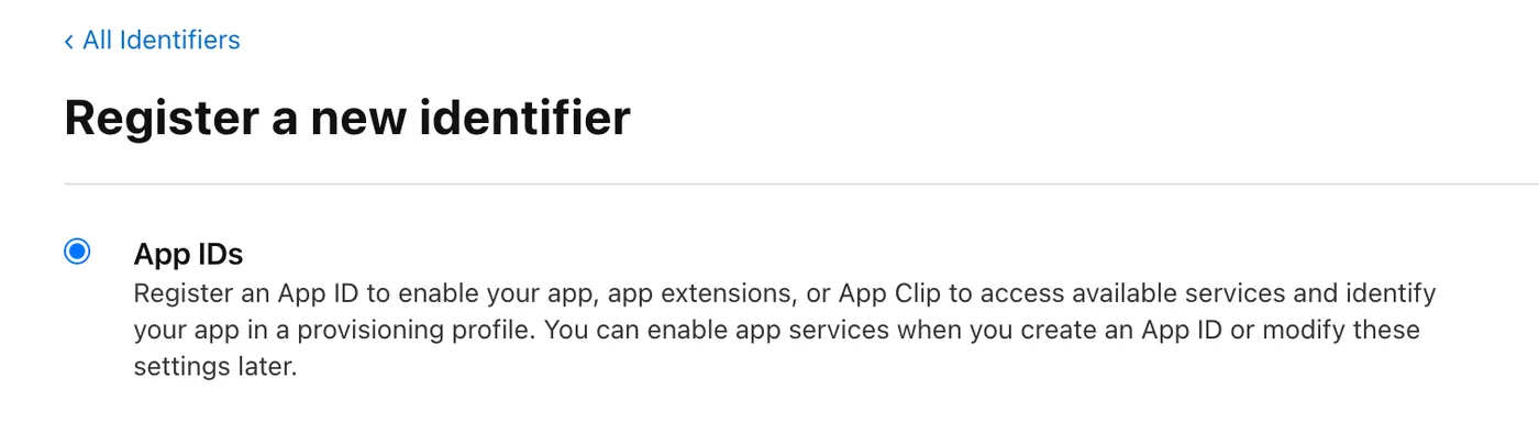Next, you need to create an identifier for your app.