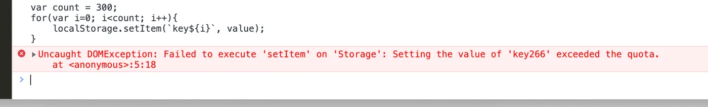 This confirms that the LocalStorage size limit is approximately 5 MB.