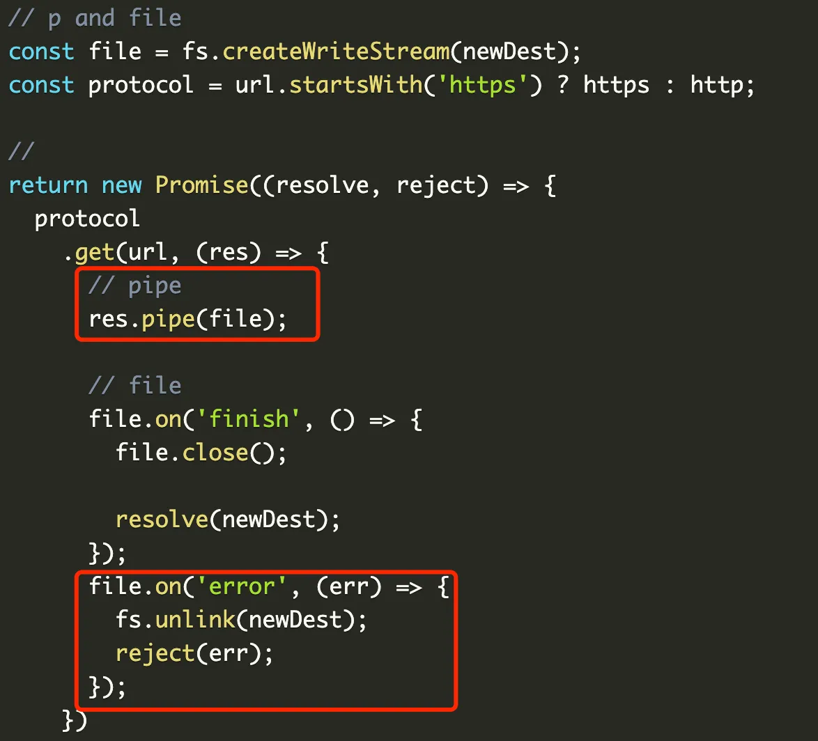 const file = fs.createWriteStream(newDest);