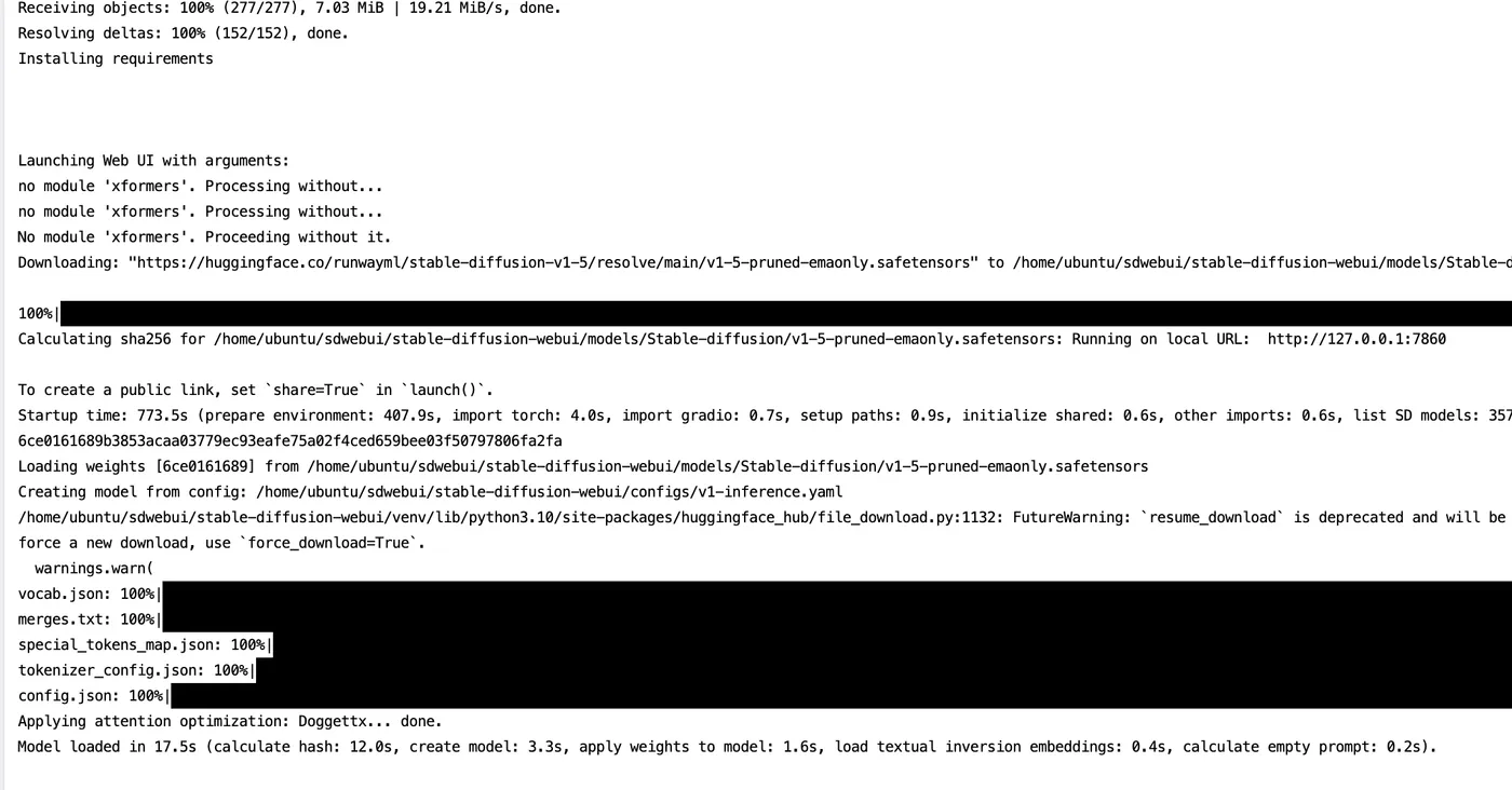 After a long wait, sdwebui starts successfully. Subsequent startups will be much faster.
