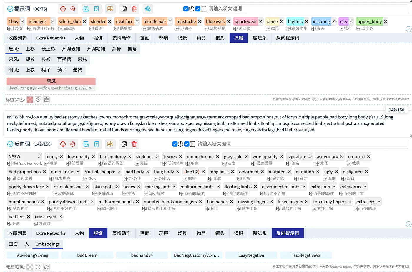 Using this plugin, I can easily describe positive prompts from various dimensions and provide negative prompts.