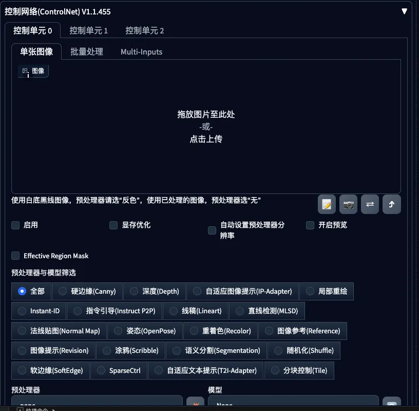 |—Supports ControlNet, with 44 built-in preprocessors and 68 built-in models